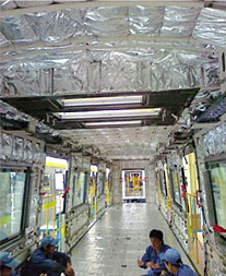 在側(cè)壁和頂棚的應用事例中,Greencos綠寰宇多型號吸聲隔熱泡綿板的低熱能傳導性顯示出高效隔熱的性能。例如,空調(diào)載客車的運行費用因此可以得到很大程度的降低。